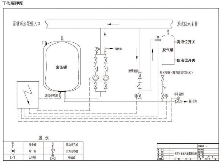 常壓式定壓補水排氣裝置最基本的功能是定壓排氣和補水, 智能控制系統使水泵和各類電磁閥有機配合起來, 在各類傳感器的檢測下, 實現精準定壓和自動補水。此外,定壓補水排氣機組具有明顯排氣功能, 其根據物理的原理, 通過將系統的壓力釋放的常壓罐中, 達到排氣的功能,有效的解決循環水中的氣體問題。