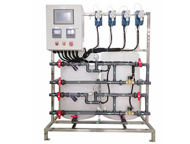 3.藥劑投加:根據(jù)水質(zhì)監(jiān)測(cè)結(jié)果,控制計(jì)是泵自動(dòng)調(diào)節(jié)藥劑投加量,使水質(zhì)達(dá)到預(yù)設(shè)要求。